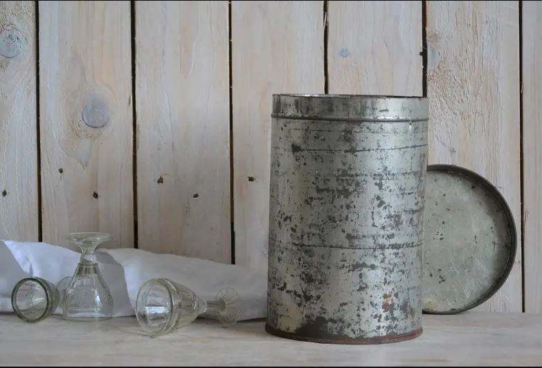Stylish White Galvanized Food Storage Container with Black Lid Ideal for Home Kitchenware and Restaurant Food Storage
