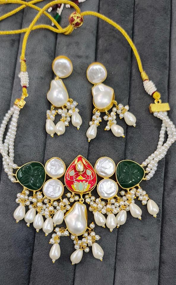 Stylish White Kundan Monalisa Stone Pearl Drop Jewellery Set Adjustable Necklace Handmade Bulk Product