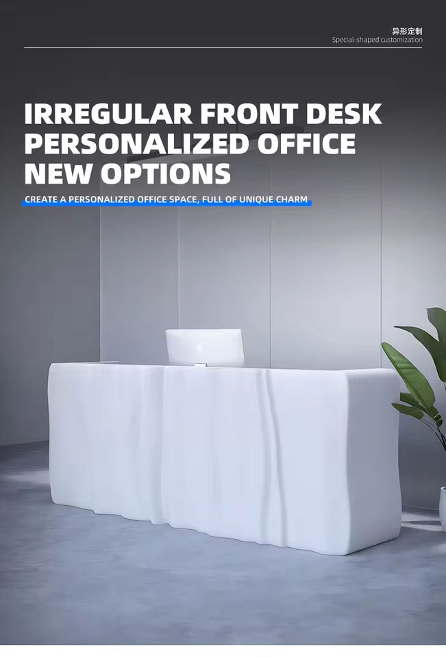 Stylish Modern White Extendable Reception Desk LED Lighting Shell Inspired Design for Hotels Malls Commercial Offices PETG