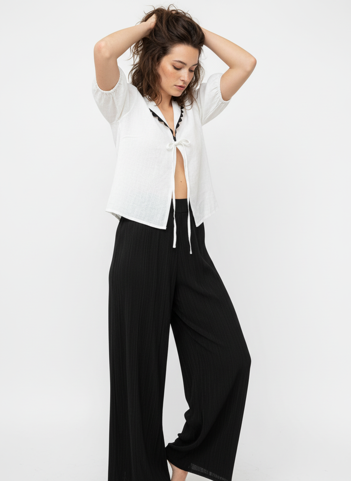 Stylish White Tie Front Puff Sleeve Top Lightweight Soft Fabric Comfortable Summer Blouse Retro Design For Casual Outings