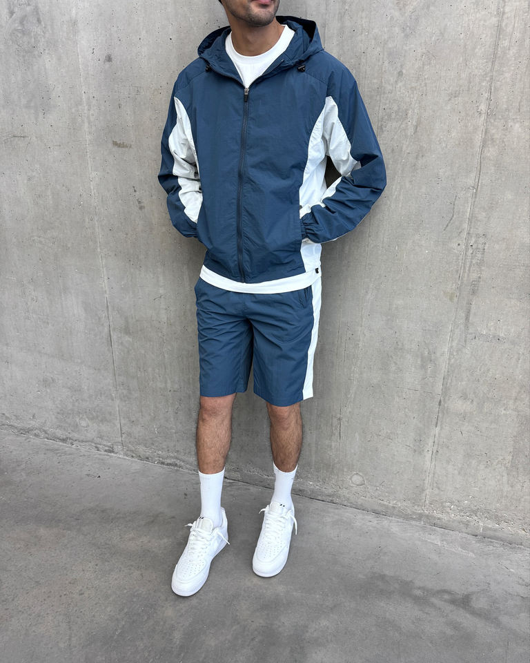 Stylish Windbreaker Jacket Polyester Windbreaker Tracksuit Jogger Sweat Suit Zip up Jacket and Shorts Set for Men