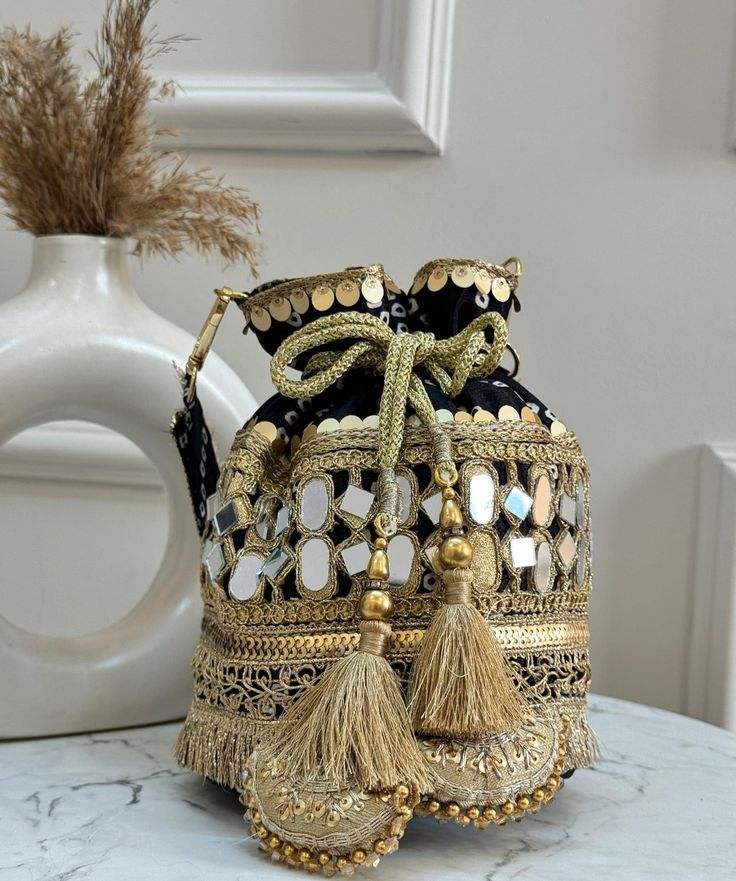 Stylish Woman Handbag for Party Art Horizons Potli Hand Bag Designer Handcrafted Potli Bag