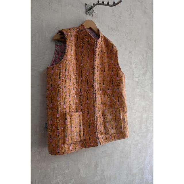 Stylish Women Eco-Friendly Cotton Quilted Vest Jacket Handmade Block Print Sleeveless Ethnic Wear Button All Season