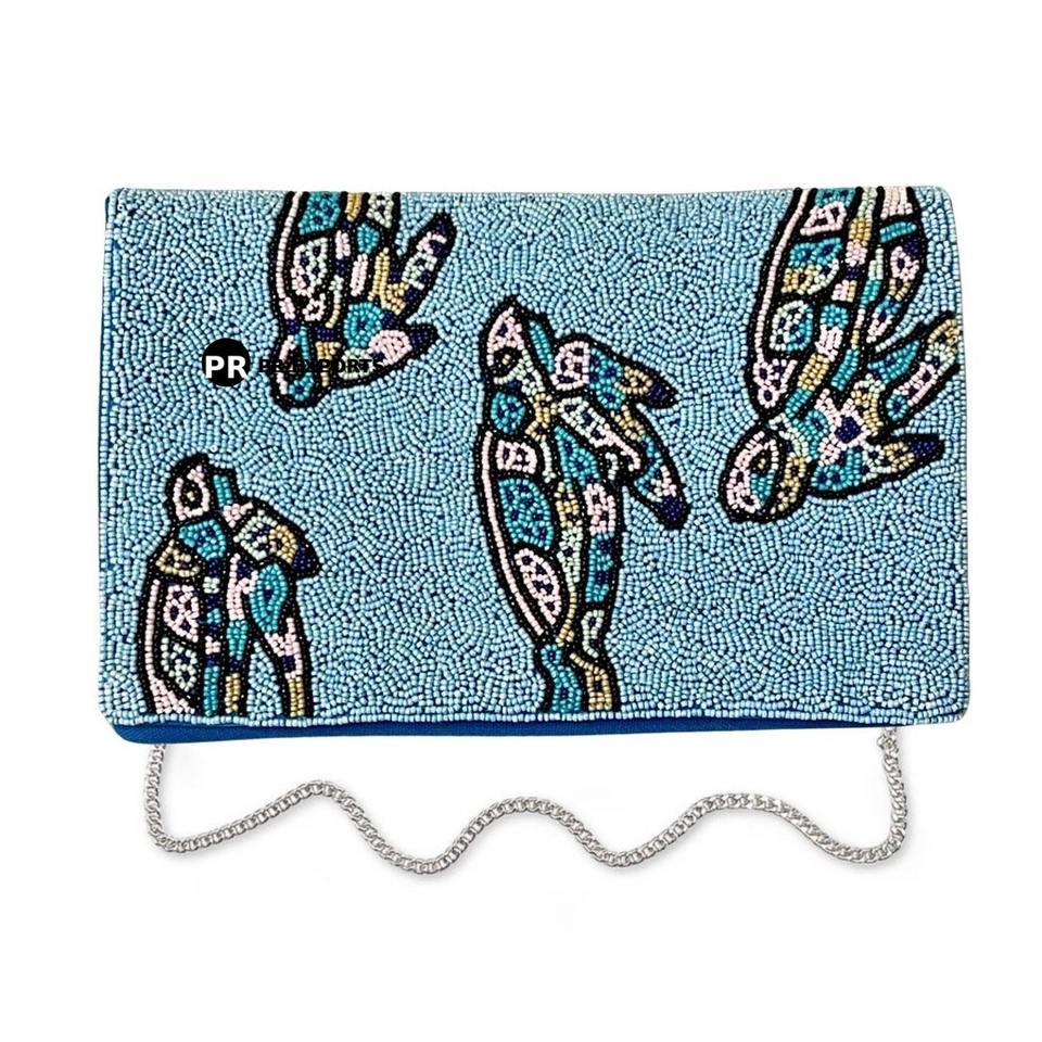 Stylish Women's Beaded Clutch Bag Colorful Fish Design Chain Handle Magnetic Closure-Unique Cotton Elegant Party Accessory Gift