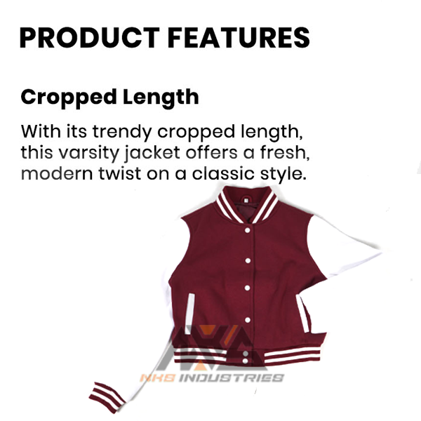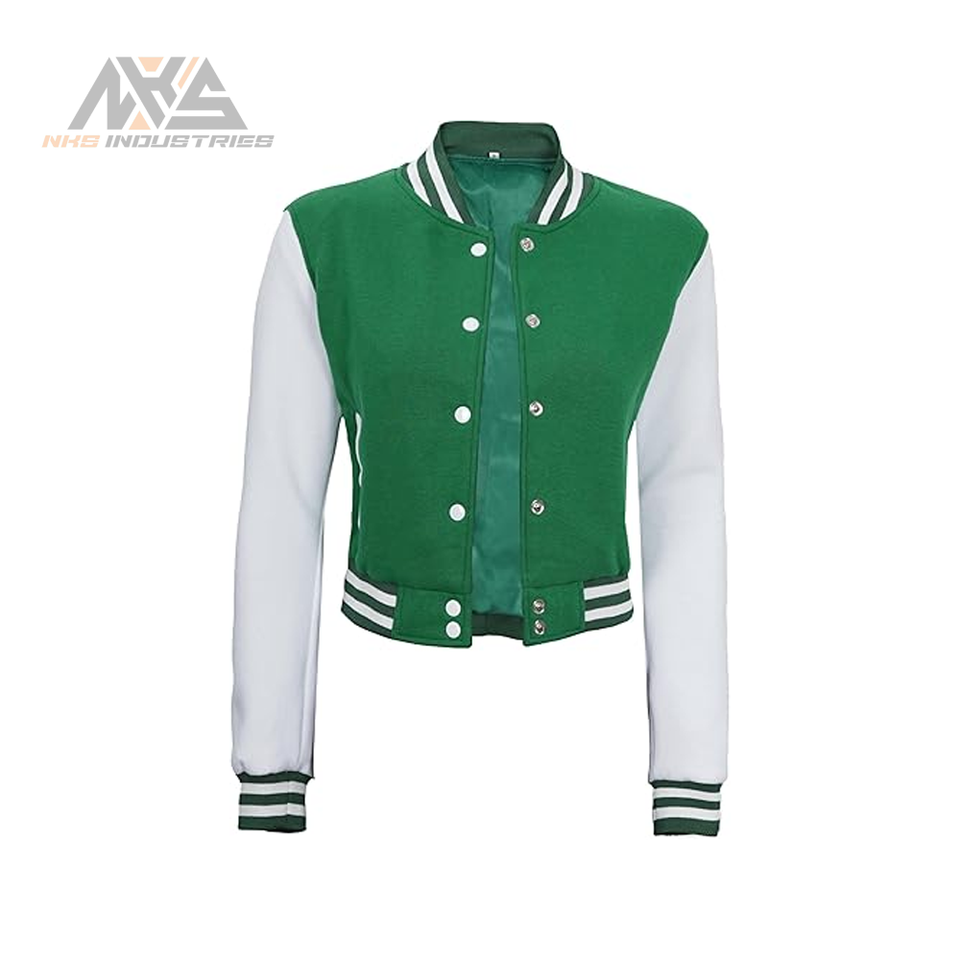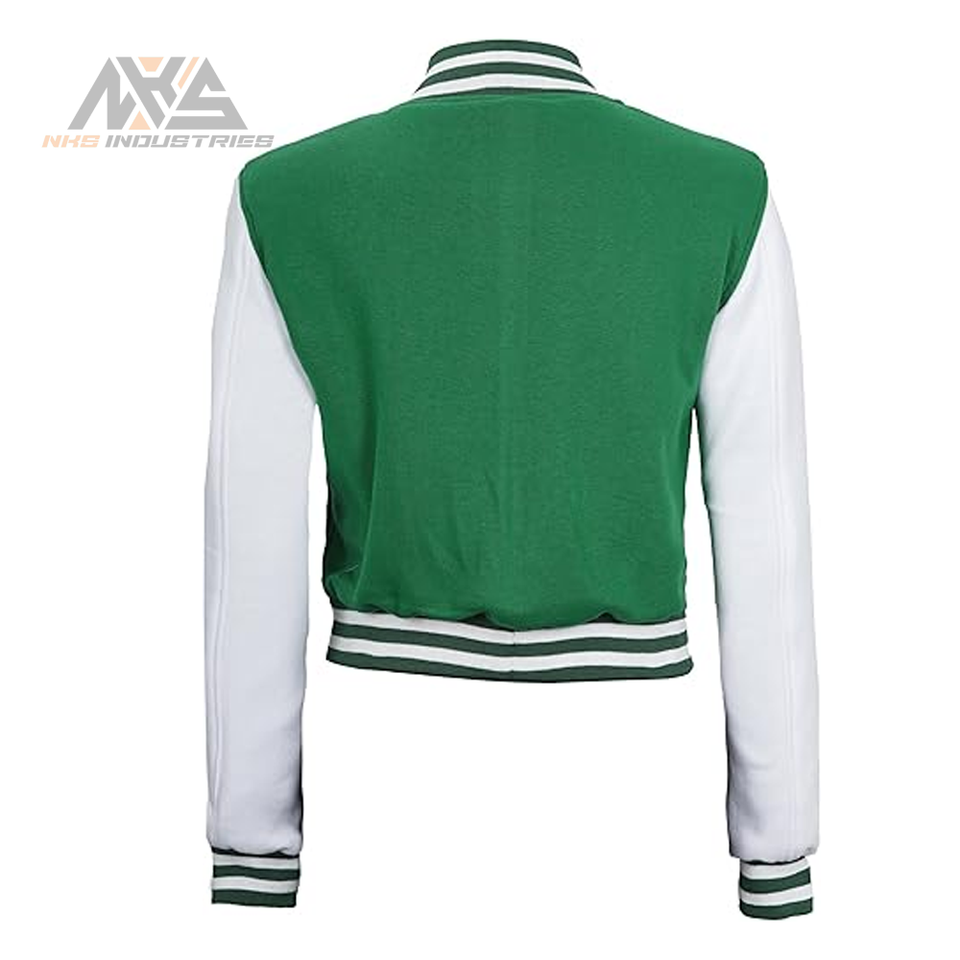 Stylish Women's Cropped Varsity Jacket High School Letterman Crop Bomber with Wool Lining Fabric Material