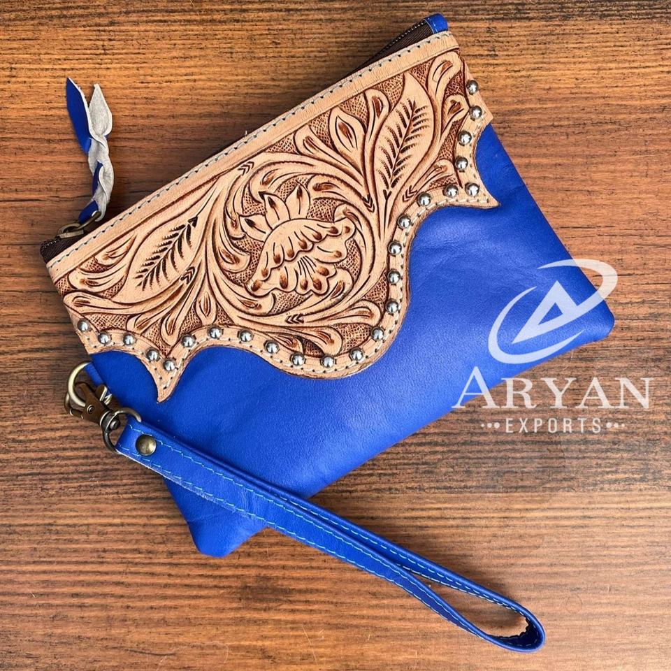 Stylish Women's Handcrafted Leather Wristlet Pouch Large Capacity Zipper Clutch Premium Genuine Leather Designer Envelope Purse
