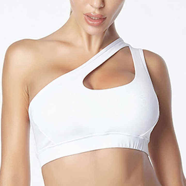 Stylish Women's Lightweight Gym Crop Top Custom Seamless Backless One Shoulder Sports Bra Breathable and Comfortable