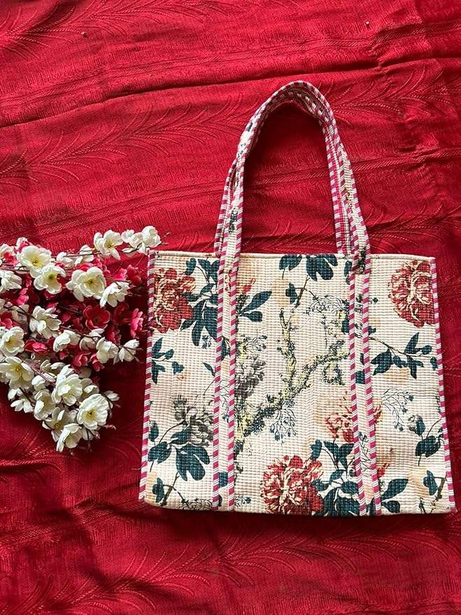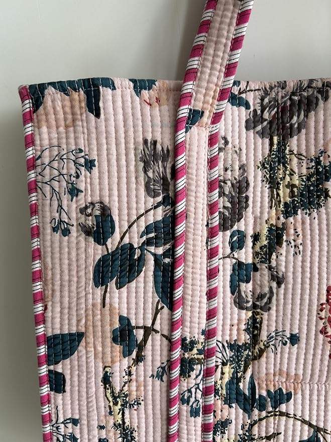 Stylish Women's Peach Canvas Tote Bag with Flower Print Design Zipper Closure Lightweight-Eco-Friendly Reusable for Beach Travel