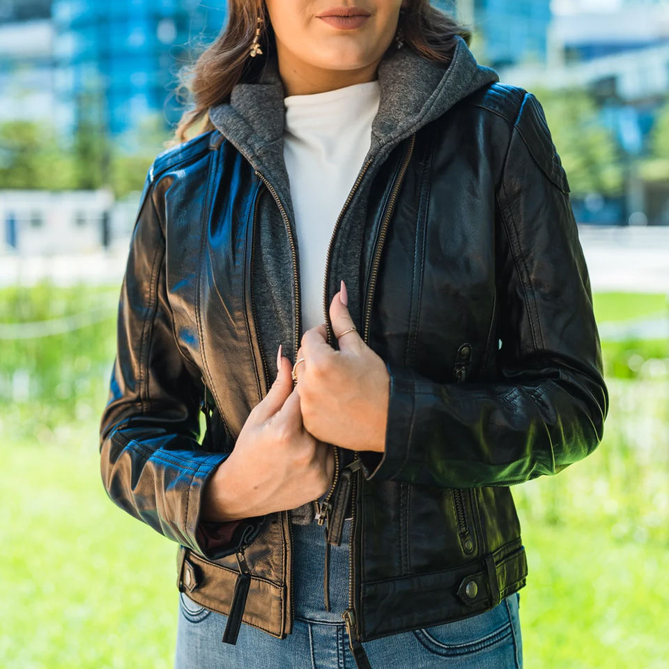 Product name:Women Hooded Leather Jacket
