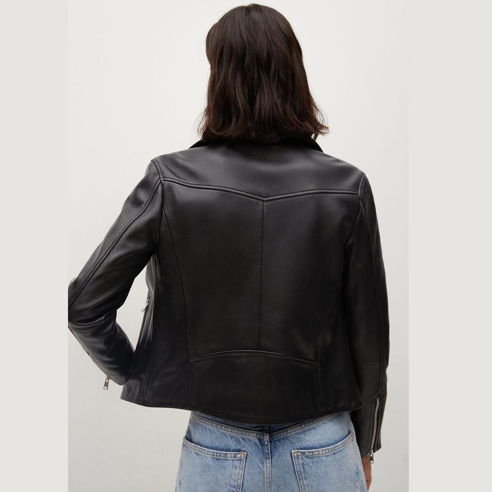 Stylish Women's XL Quilted Real New Skin Leather Motorcycle Jacket Stand Chile Fringed Cotton Breathable Biker Jacket