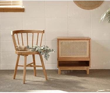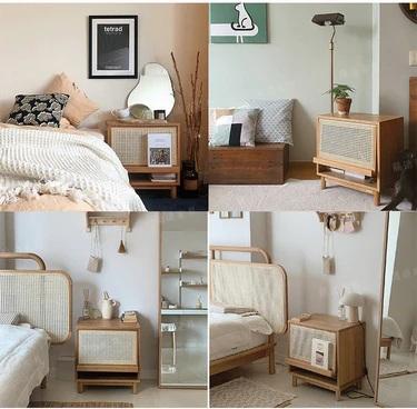 Stylish Wood and Rattan Bedside Table with Storage Shelf Modern Minimal Design Durable Nightstand for Bedroom Decor