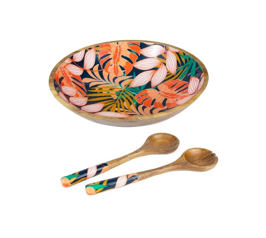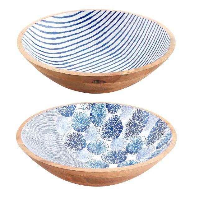 Stylish Wooden Bowls for Fruits Wood Bowl Set with Enamel Coated Print for Restaurant and Hotel Decorative Bowls Japanese Style