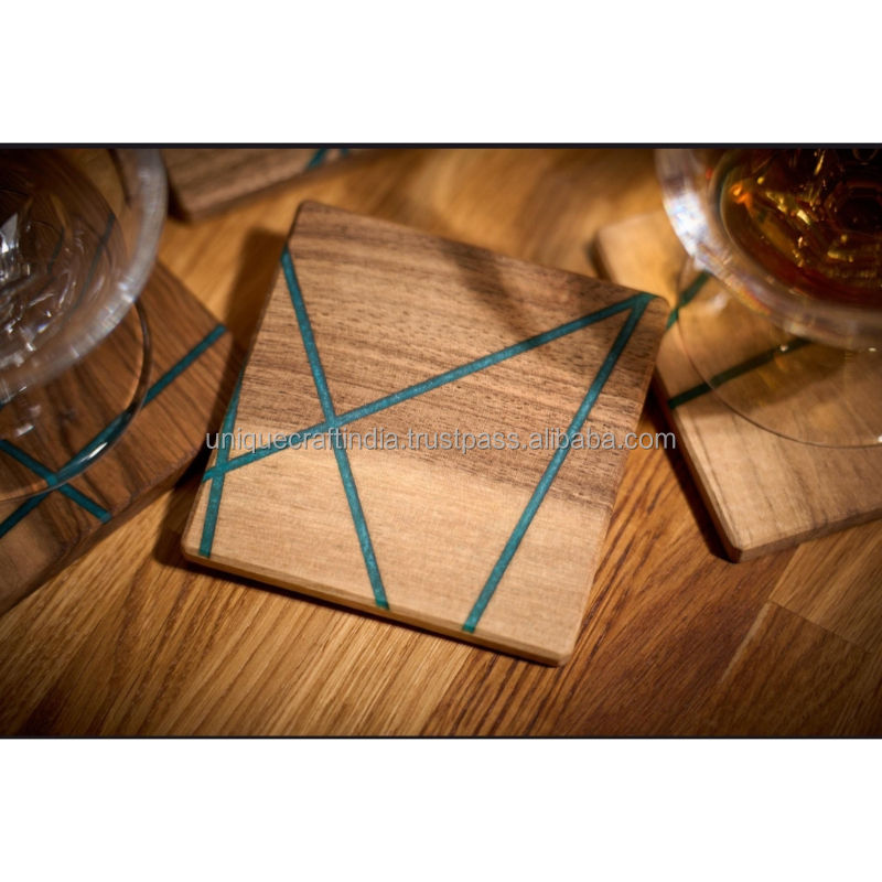 Stylish Wooden Coaster Set with Printed Storage Box Handmade Durable Drinkware Modern Tabletop Decor for Kitchen and Living
