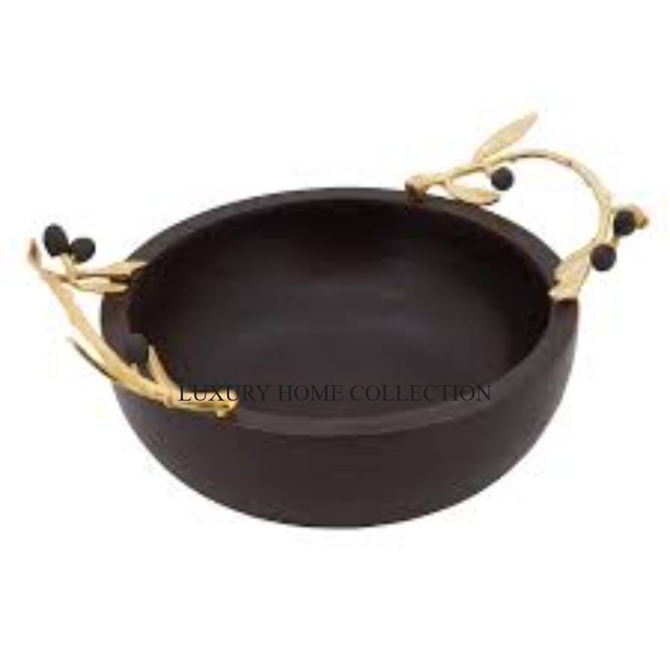 Stylish Wooden Salad Bowl with Deep Rich Color Perfect with Metal Handle for Serving Salads Mixing Ingredients for Other Dishes