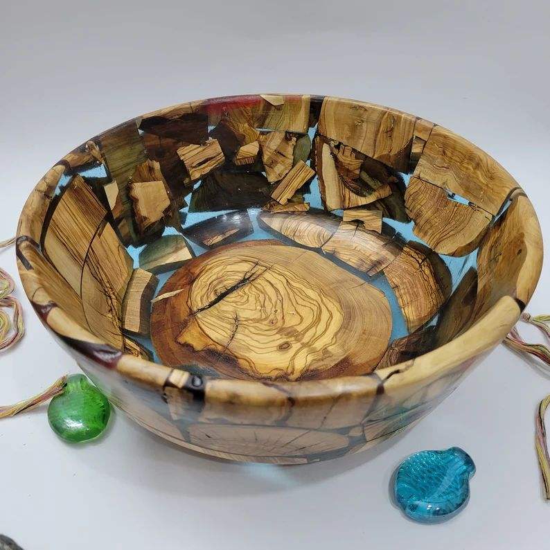 Stylish Wooden and Resin Bowl for Serving Snacks and Food