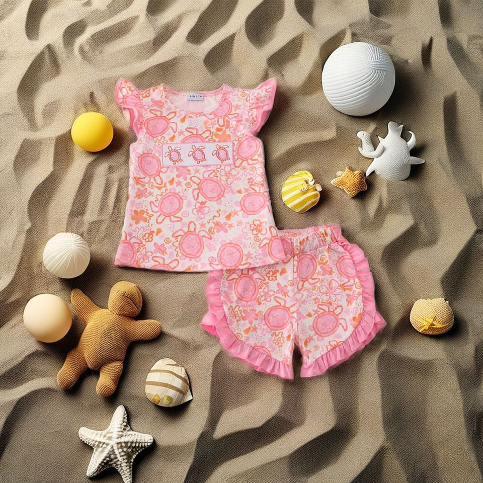 Stylish and Comfortable Pink Bow Embroidered Girls Swimsuit Set Two-Piece for Pool Parties or Beach Adventures Baby Dresses