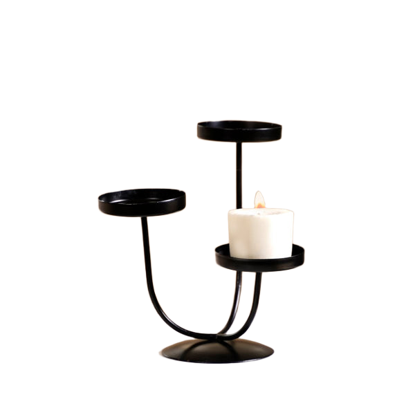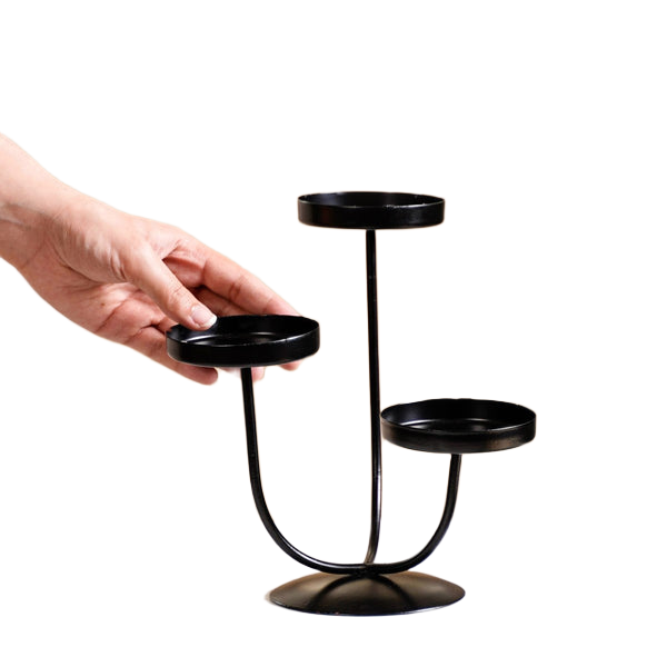 Stylish black triple-arm metal candle holder perfect for enhancing ambiance in living room and bedroom with modern flair