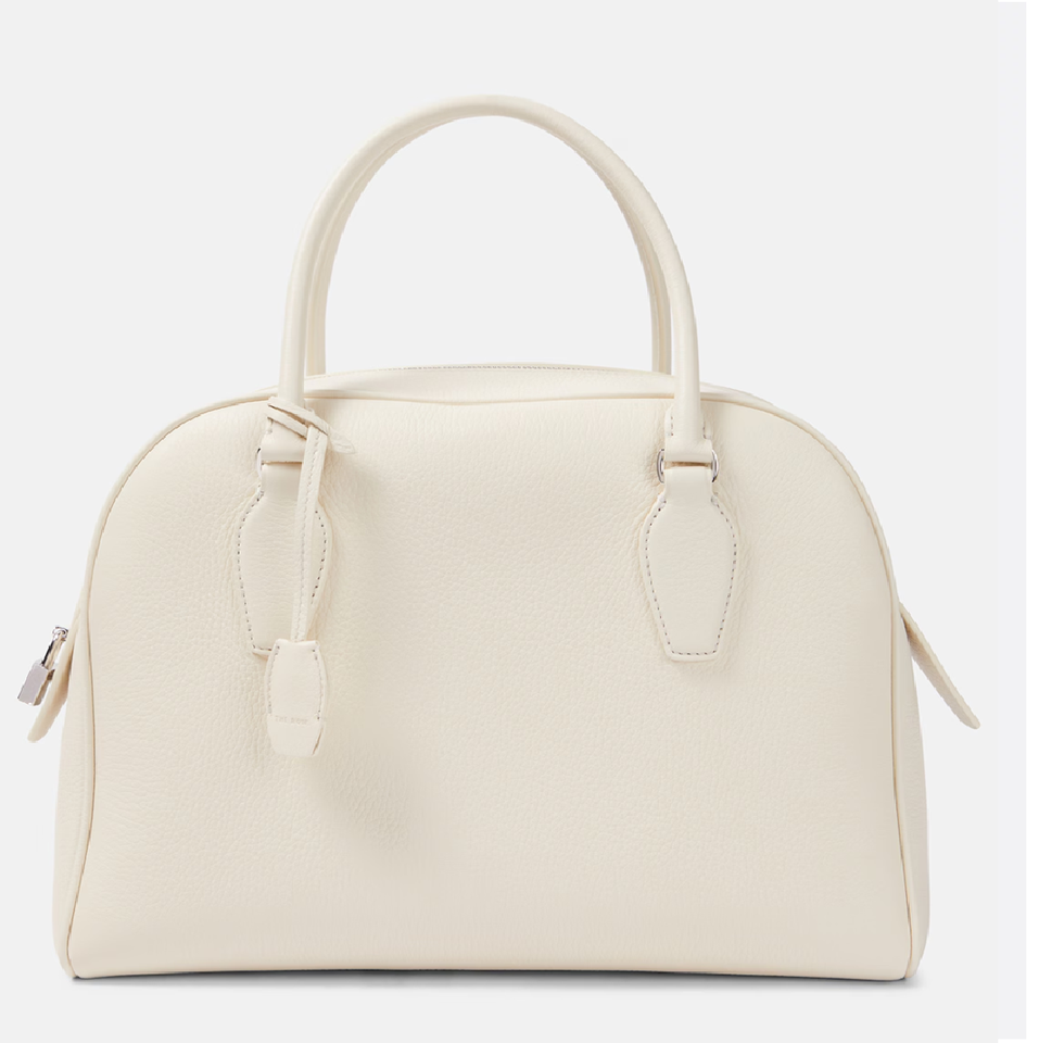 Stylish brown leather tote with contrasting white stitching, perfect for a professional look, available at wholesale prices.