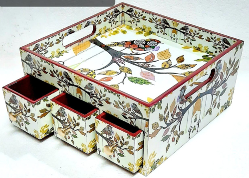 Creative Wooden Jewelry Drawer Box with Unique Square Enamel Print Design for Storage and Decor