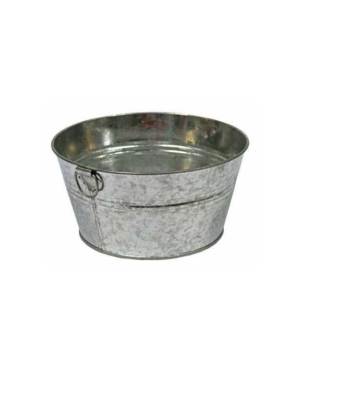 Stylish galvanized garden container planter for urban terrace planting and outdoor seasonal floral arrangements