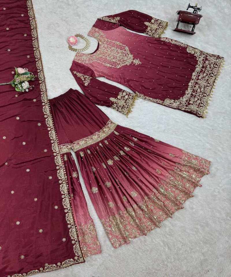 Stylist Stitched Bridal Dresses Sharara Eid Maria Formal Beautiful Arabic Style Boutique Design Top Sharara Dupatta Set