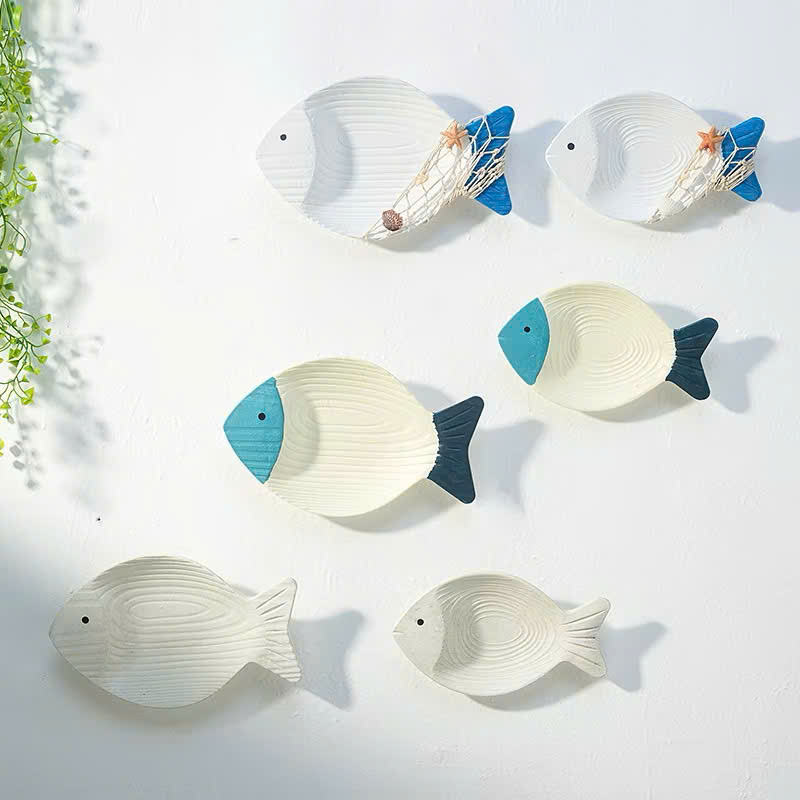 Stylized Blue Wooden Fish Wall Decor Starfish & Rope Accents Mediterranean Style Hanging Ornament Beautiful & Long-lasting