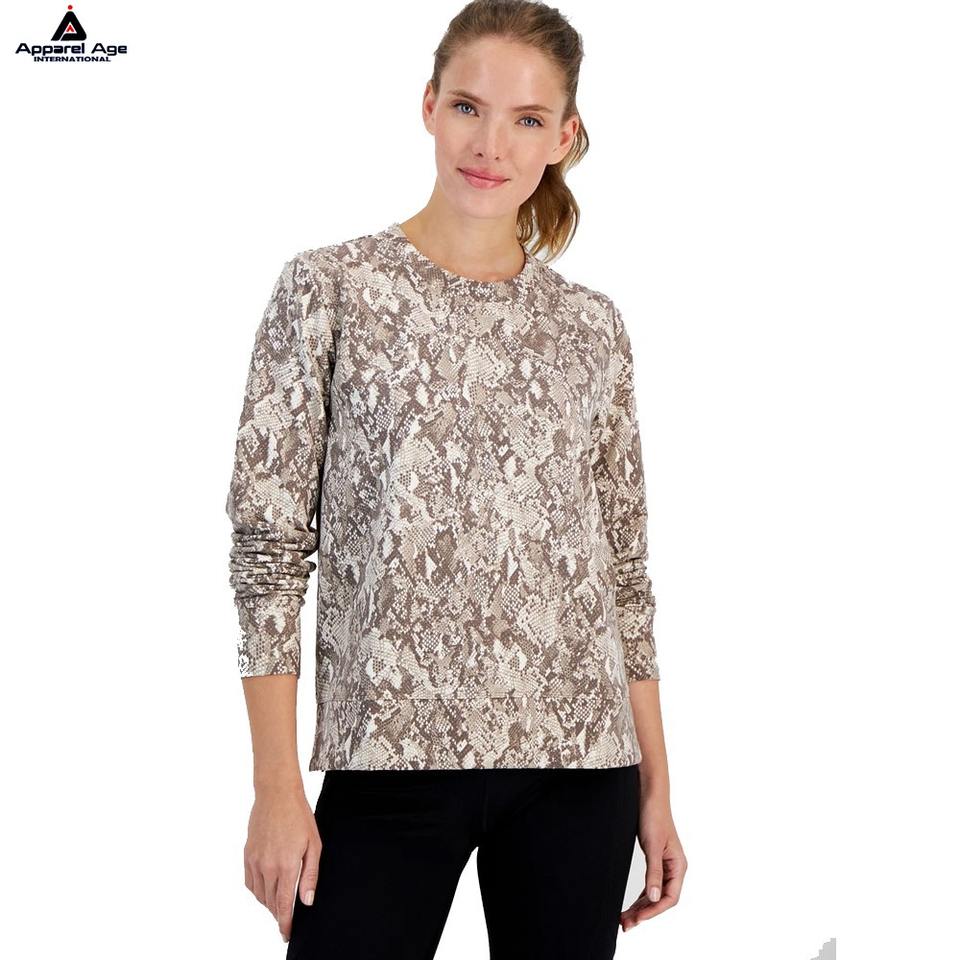 Subblimation Print Women Long Sleeve Shirts Crewneck Leopard Print Casual Tunic Lightweight Fall Sweatshirts Basic Top Outfit
