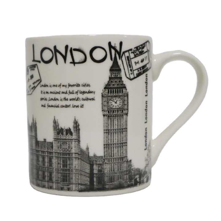 Sublimation Custom Logo Printed Porcelain Coffee Mugs Blank Color Ceramic Mugs 18oz London City Mug