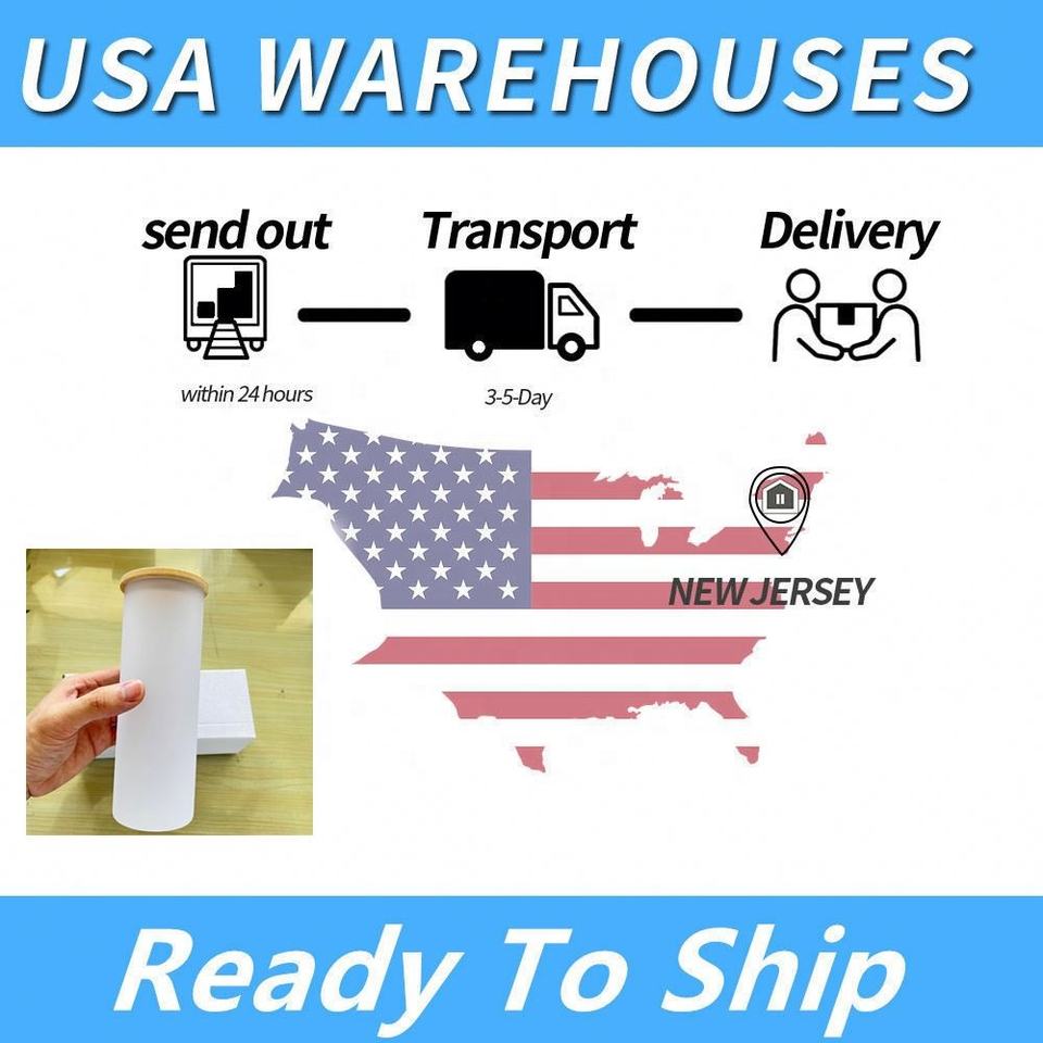 Sublimation PP Glass Can Bamboo Lid Straw 16oz 18oz 25oz Blanks USA Warehouse Frosted Bear American Style Sublimation Glasses