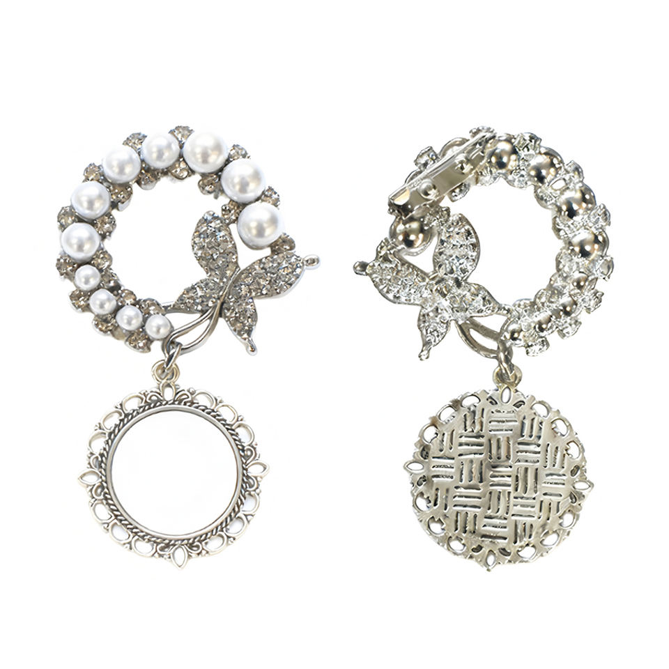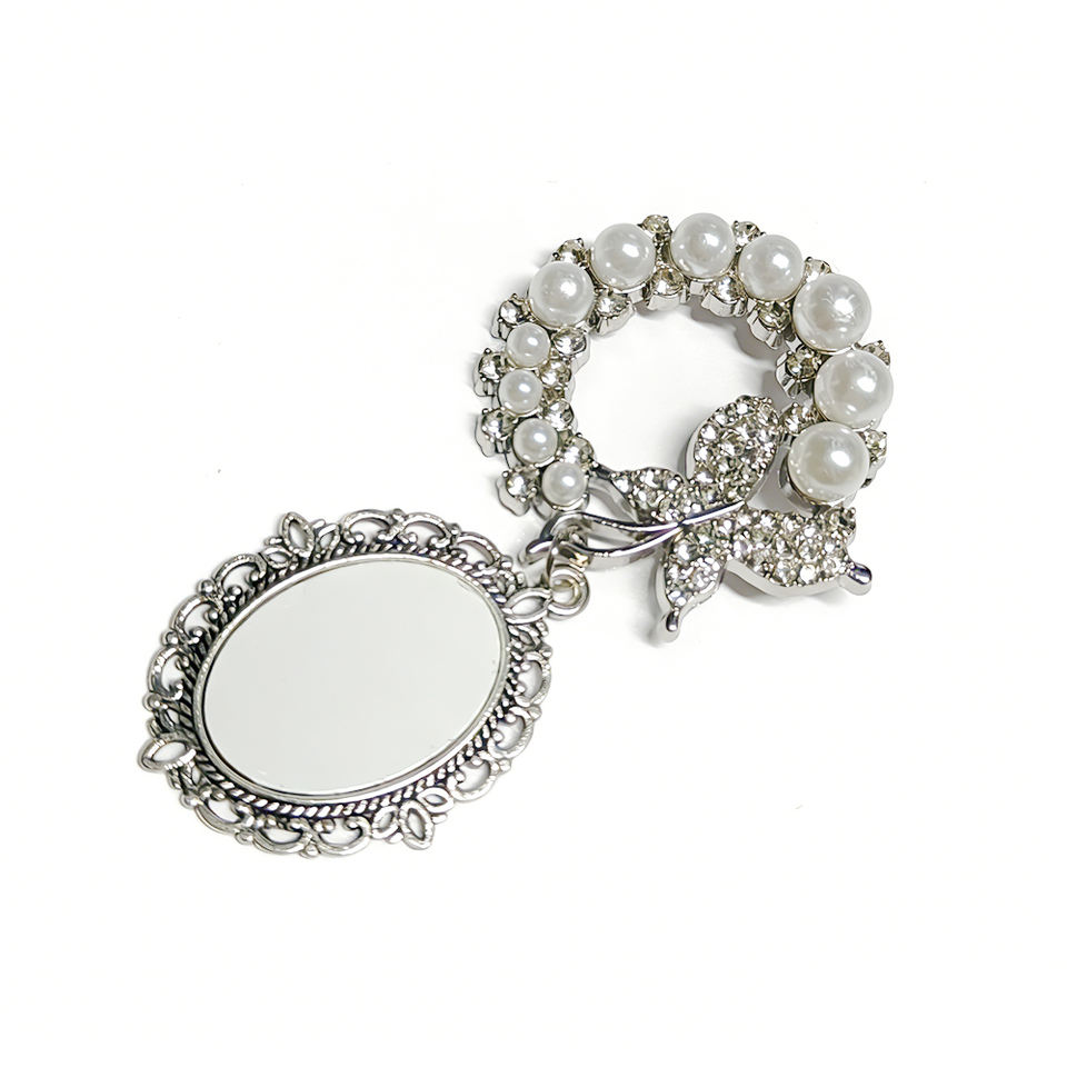 Sublimation Pearl & Butterfly Accent Elegant Brooch - Blank Heat Transfer Pin Jewelry, Round/Oval Shapes for Custom Photo