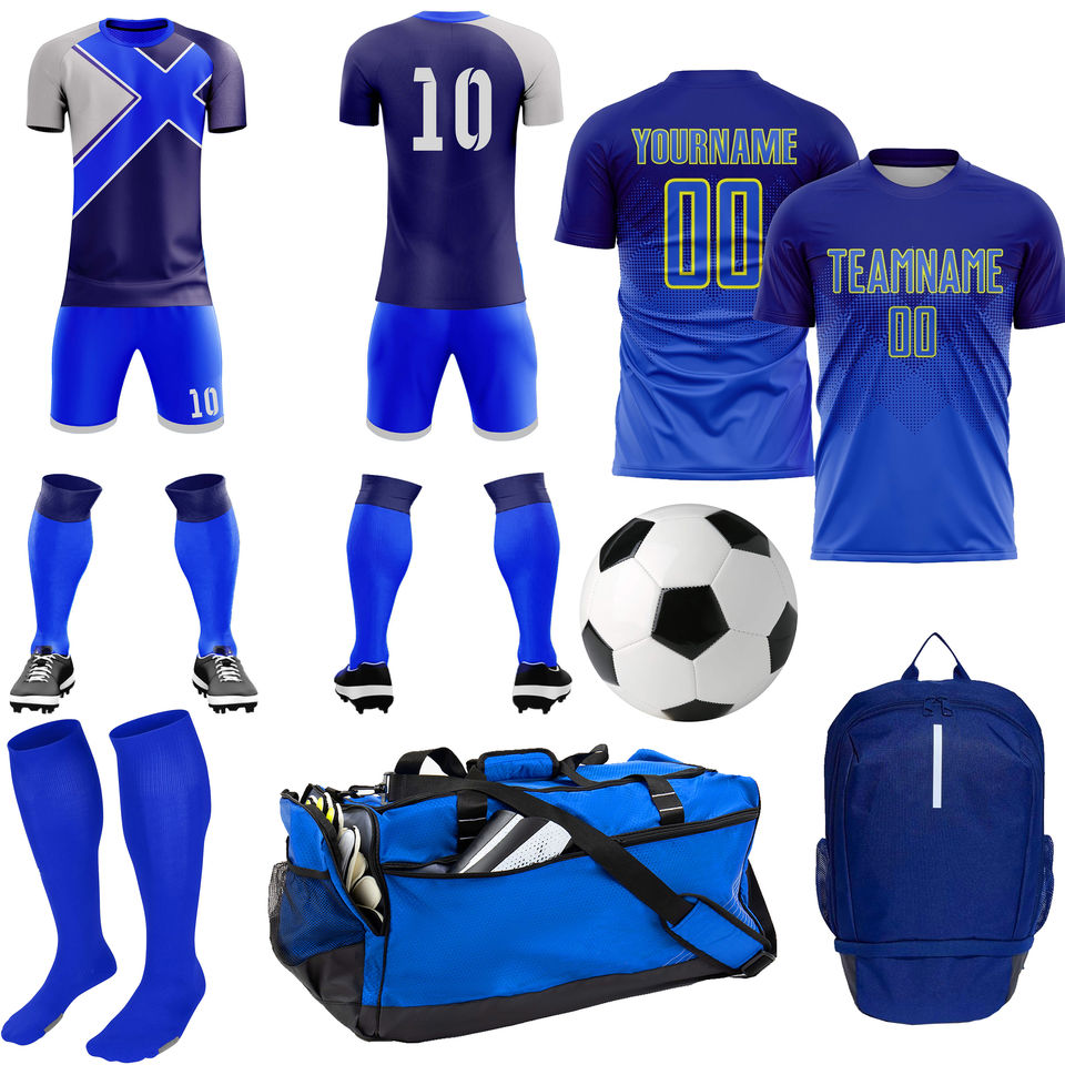 Sublimation Soccer Uniform Kits Full Package Adult Team Tanning Soccer Uniform Sets With Bag Pack Ball Duffle Bag And Socks