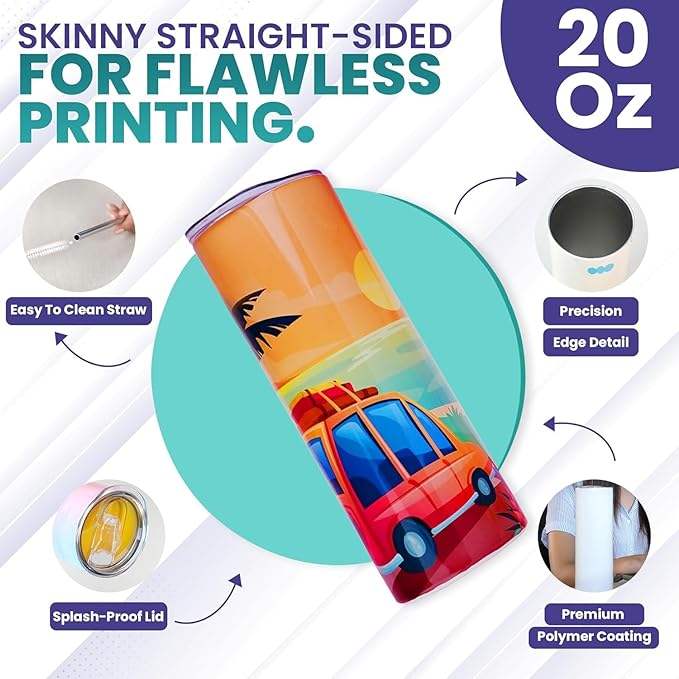 Sublimation Tumblers 20oz Straight Skinny Vacuum Insulated Stainless Steel With Straw Lid Individual Gift Box Bulk Pack