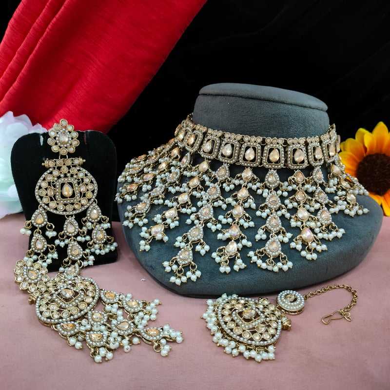 Subtle Luxury Graceful Touch Detailed Minimal Pearls and Kundan Stones Maang Tikka Necklace Set Fashionable Delicate Jewelry