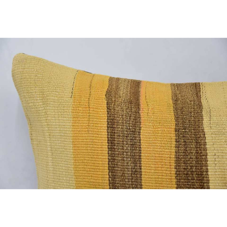 Subtle Striped Beige Kilim Patchwork Pillow 16x24 Inch Vintage Square Wool Cushion for Living Room Bedding