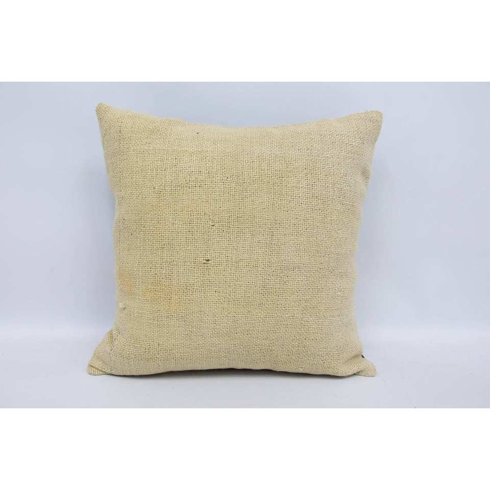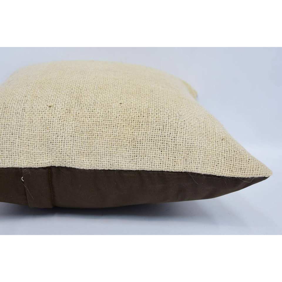 Subtle Striped Beige Wool 18x18 Inch Kantha Pillow Luxury Vintage Fluffy Woven Decorative Cushion for Bedding or Floor Use
