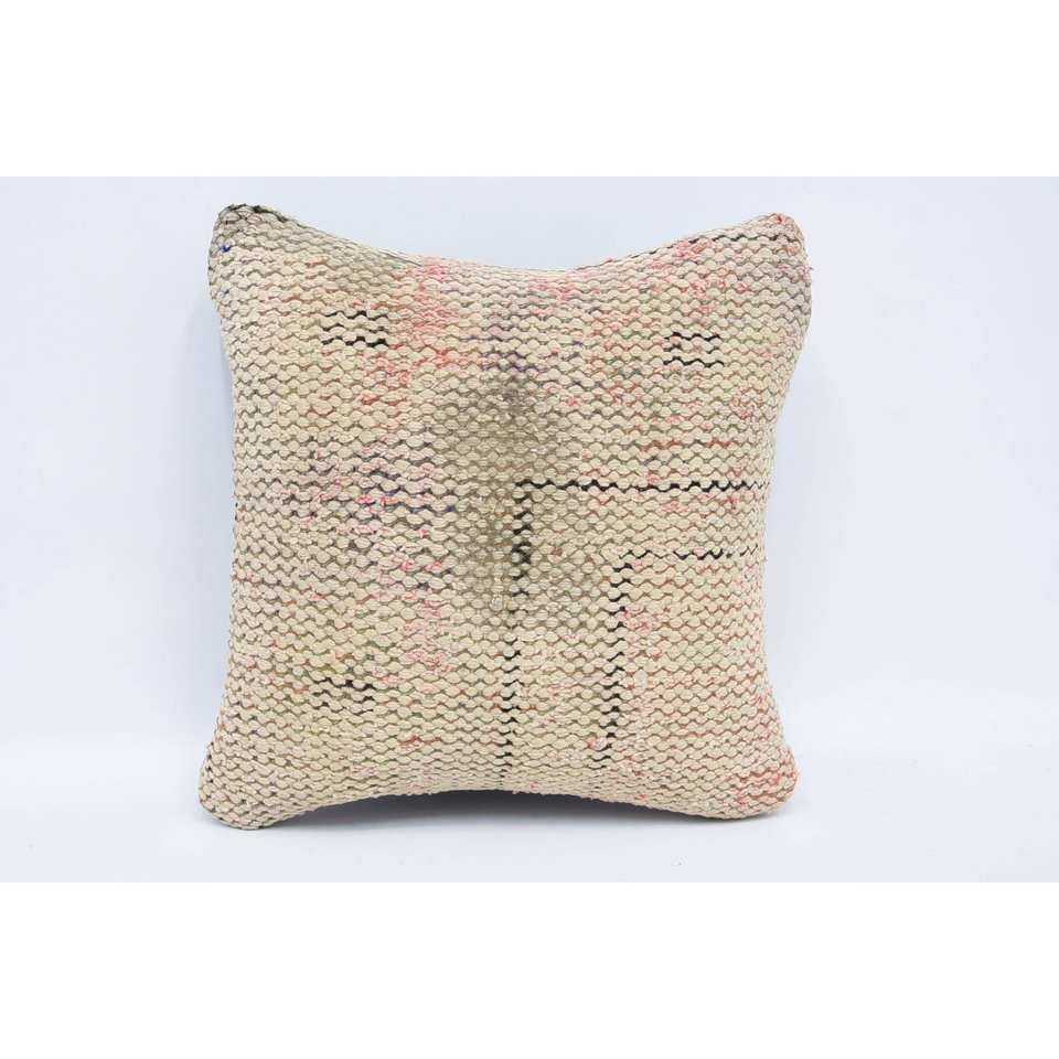Subtle Striped Wool Kantha Patchwork Pillow 12x12 Inch Beige Luxury Living Decorative Cushion Woven Technique Vintage Fluffy