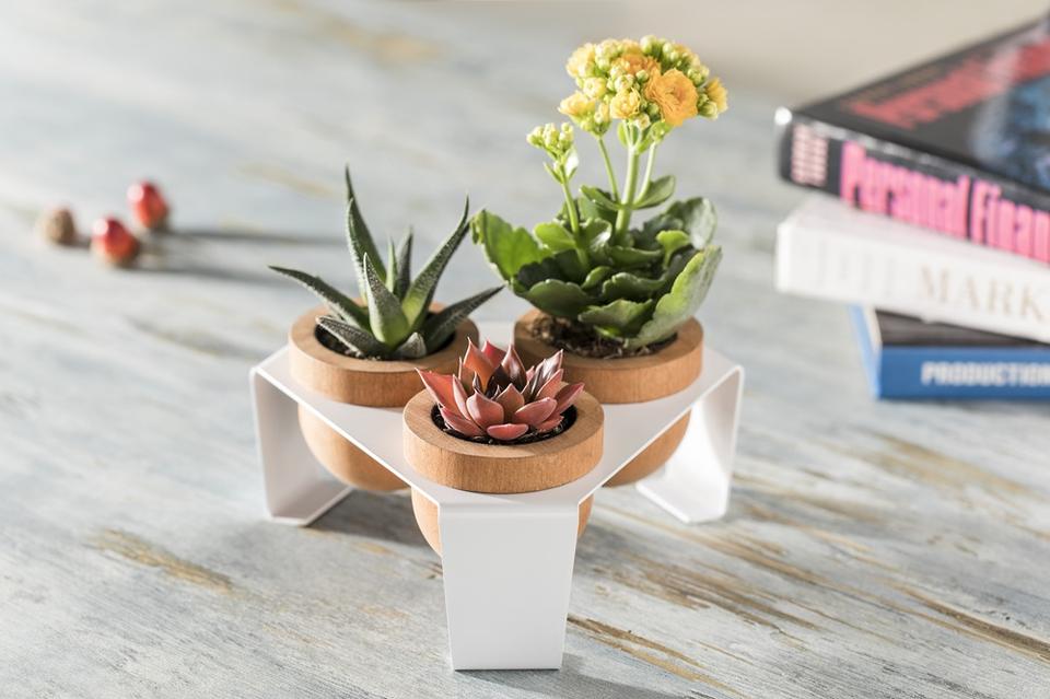 Succulent Planter Wood Plant Pot White Metal Stand Home Office Decor Plant Holder for Desk Plant Display European Succulent Pot