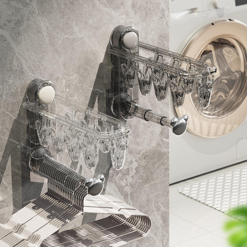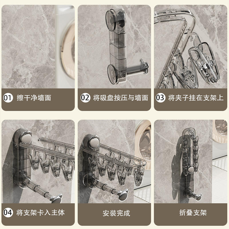 Suction Cup Folding Clothes Rack Double Bar Wall Mounted Drying Rack For Bathroom And Balcony Sock Organizer