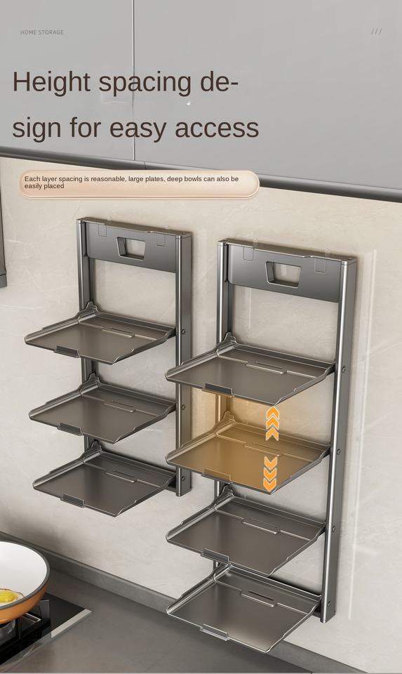 Suction Cup Multi-Layer Vegetable Rack Kitchen Storage Wall Mounted Foldable Multifunctional Modern Household Side Dish Tray