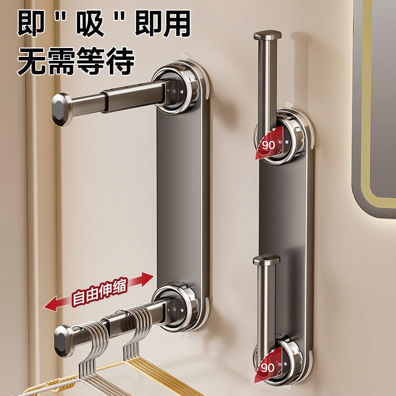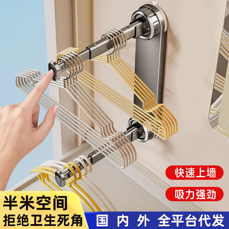 Suction Cup Telescopic Rod Clothes Hanger Storage Wall Mounted Adjustable Organizer For Balcony And Closet Use