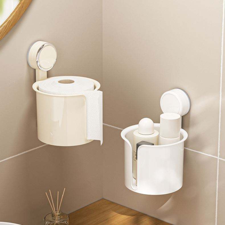 Suction Cup Tissue Artifact Box Storage Rack Wall Hanging Punch-Free Toilet Paper Roll Holder