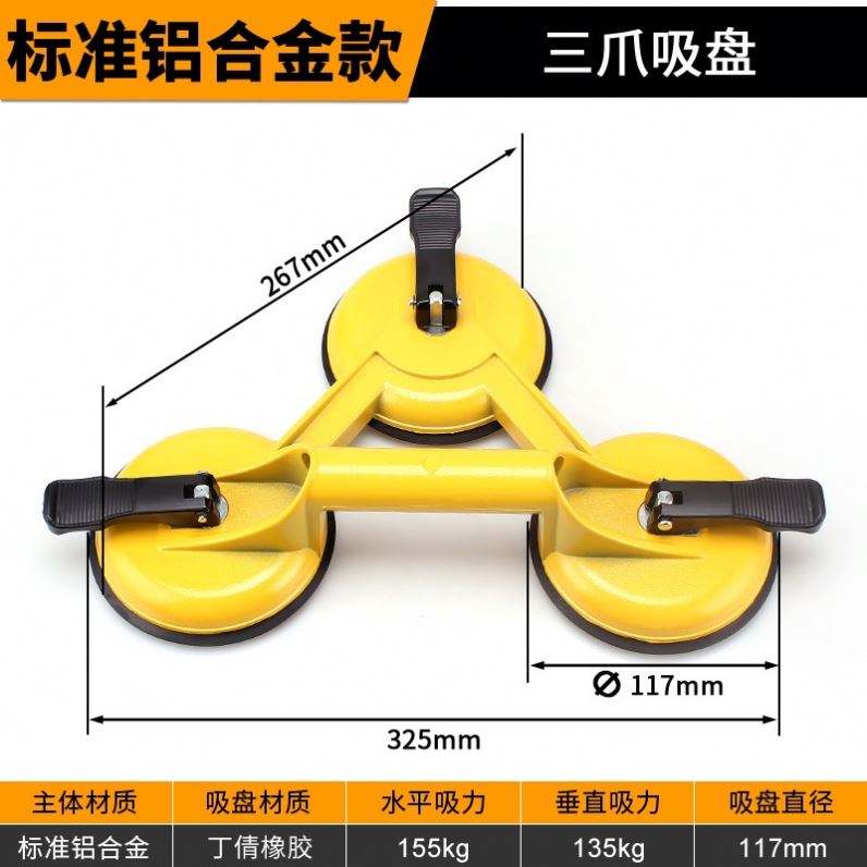 Suction Cups Heavy Duty Aluminum Vacuum Plate Handle Glass Holder Hooks to Lift Large Glass