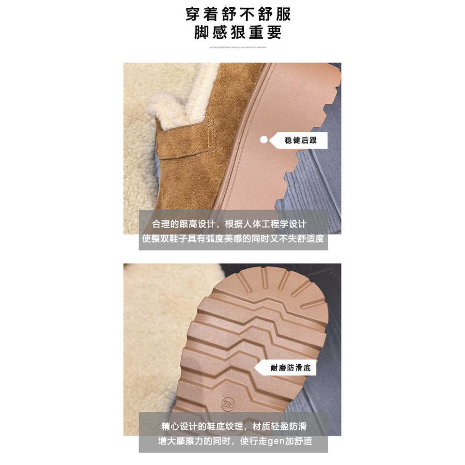 Suede High Heels with Slip-On Platform Sole 5-8cm Low-Top Single Shoes Deep Mouth and Rubber Artificial Plush Toe Snow Boots
