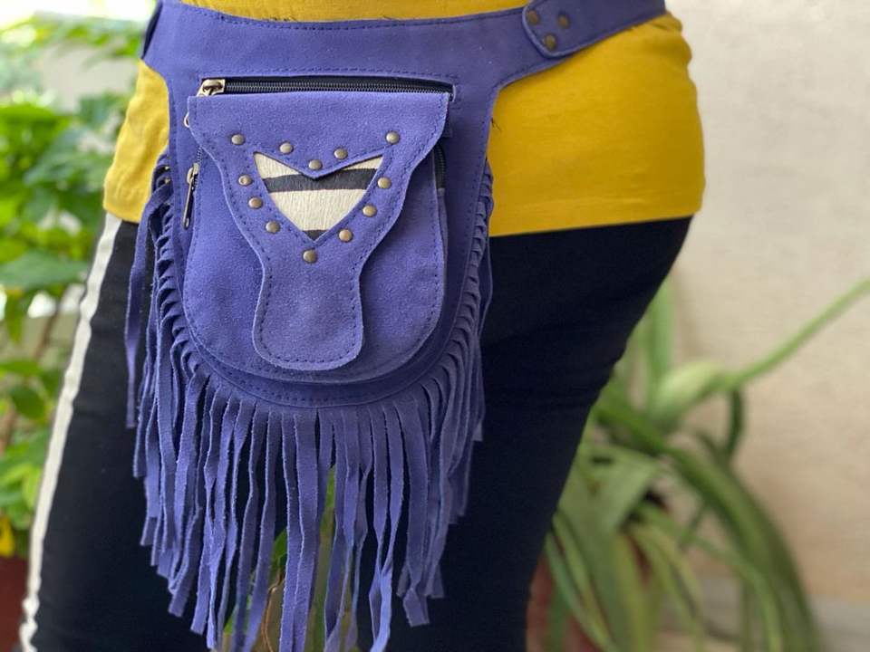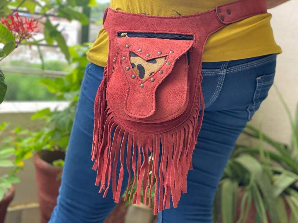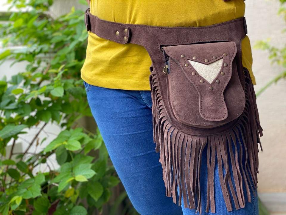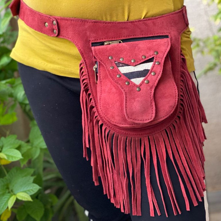 Suede Leather Fringe Belts Hip Pocket Fanny Pack Multi Uses Travel Belts Hip Bag Waist Belts