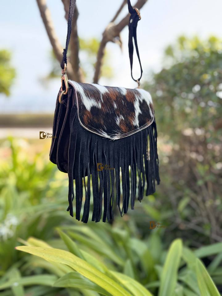 Suede Leather Fringe Handbag Hair on Hide Leather Sling Bag Stylish Bags Unique High Quality Bags for Women's