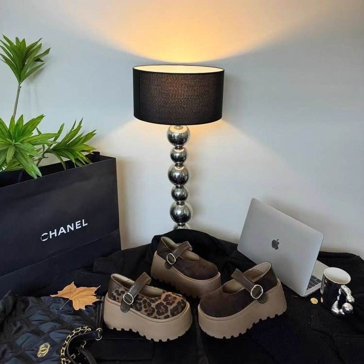Suede Mid-Top Mid-Heel (3-5cm) Round Toe Platform Sole Flats Single Shoe One-Strap Buckle Inner Lining Rubber Low-Top Design