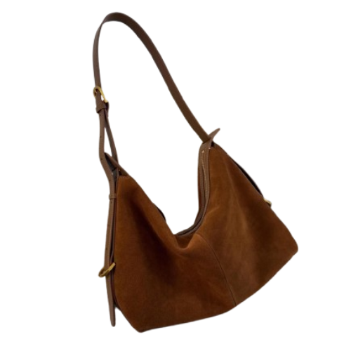 Suede Tote Bag Genuine Leather Handbag, Minimal Shoulder Bag with Leather Band Strap & Buckle, Handmade Everyday Purse