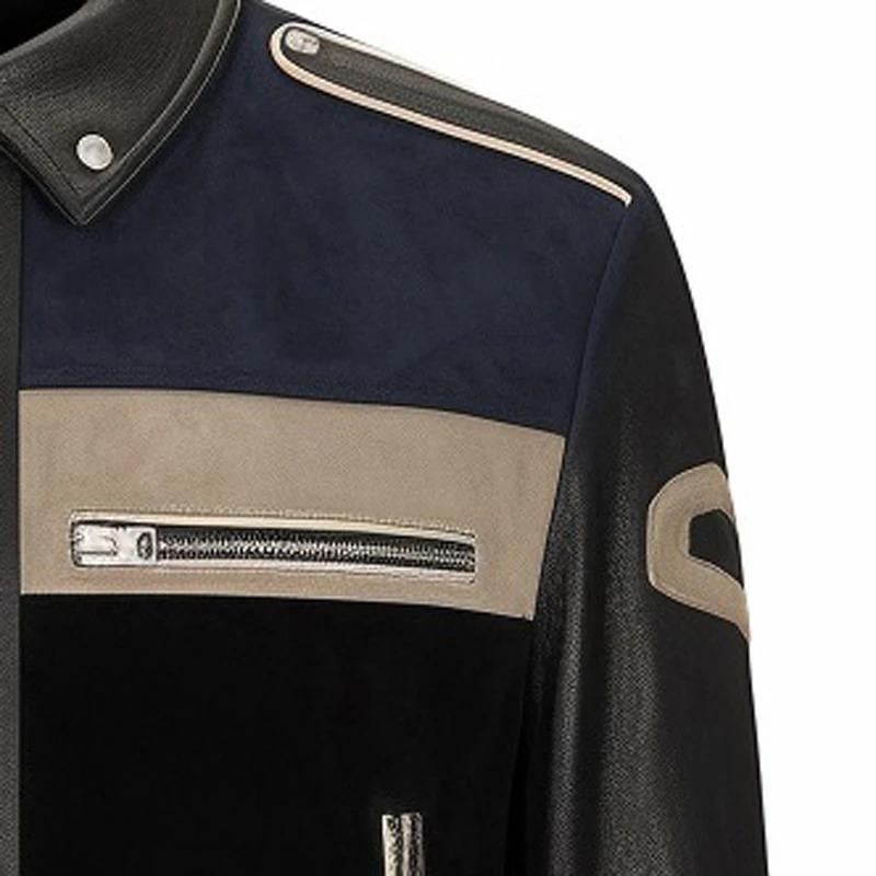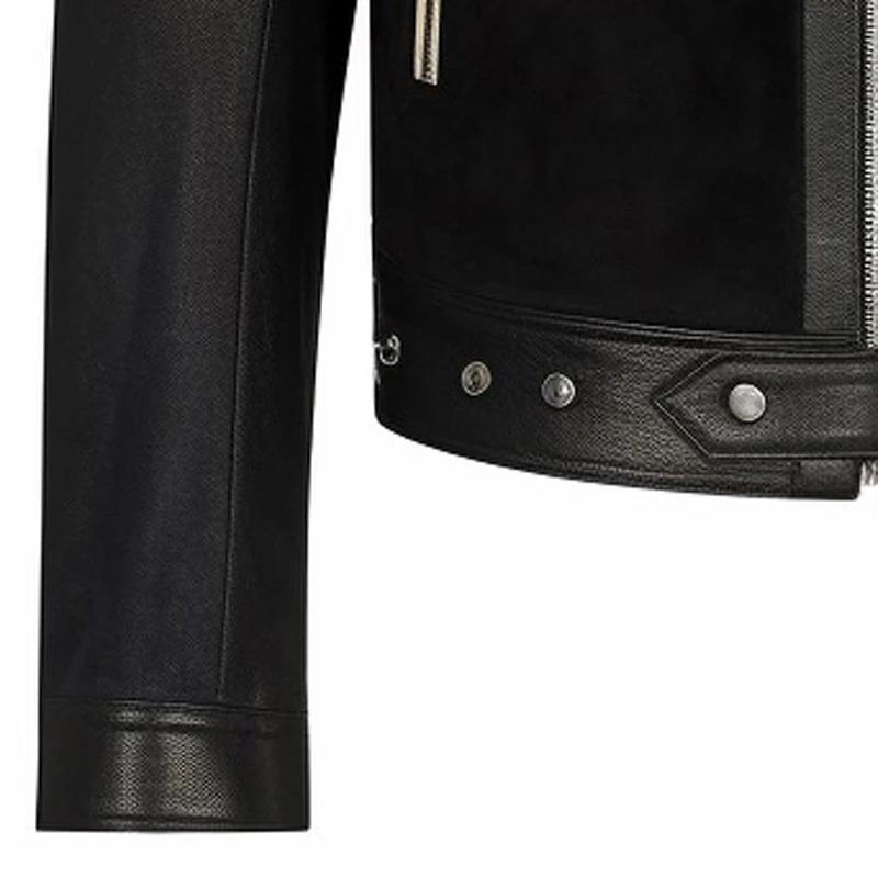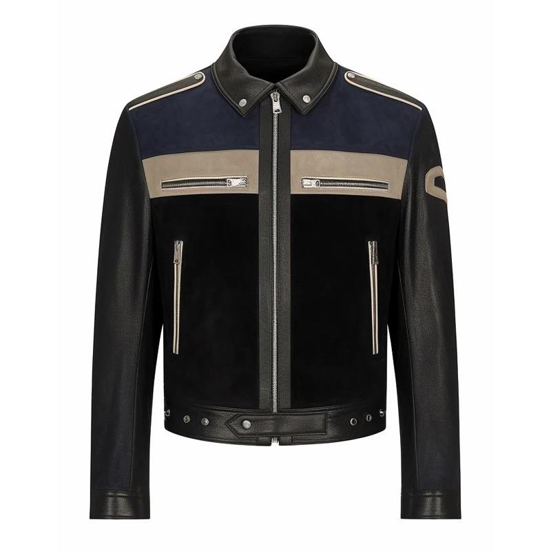 Men's High Quality Suede Jacket British Trend Color Blocking Custom Stand Collar Full Grain Sheep Skin Genuine Fashionable