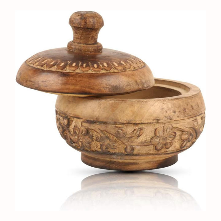 Sugar Bowl with Lid Decorative Wooden Mango Wood Jar for Candy Spice Condiment and Nut Spice Herb Serving Bowl Storage Container