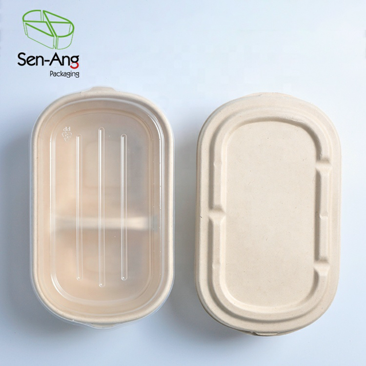 Sugarcane Bagasse Pulp Eco-friendly Compostable Salad Bowl with Lid Recyclable Square Bowl for Sushi Noodles for Food Serving